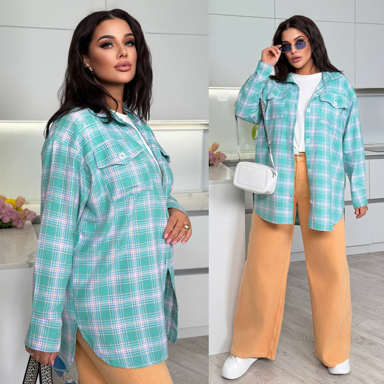 Жіноча подовжена сорочка в клітку (р.48-50,52-54,56-60) фланель бавовна